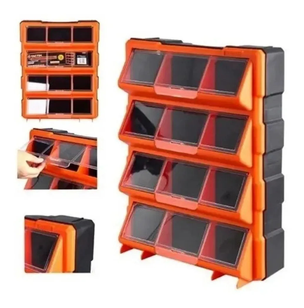 Pon fin al desorden y encuentra cada pieza al instante con el Organizador de 12 Compartimientos TACTIX (TX320648). Este práctico gavetero es la solución ideal para almacenar, clasificar y proteger componentes pequeños como tornillos, tuercas, arandelas, clavos, terminales eléctricos, insumos de pesca y artículos de manualidades.