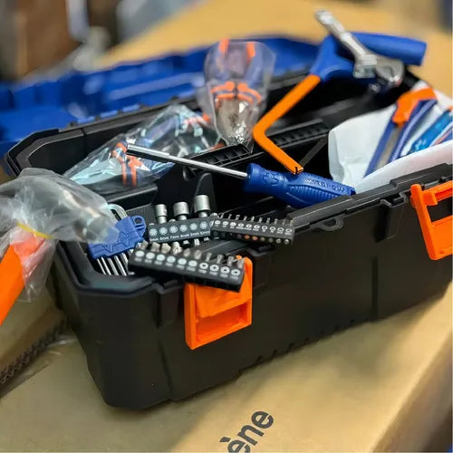 El Juego de Herramientas Manuales de 84 Piezas de WADFOW es el kit de inicio perfecto para el hogar, el departamento o para tener en el auto. Contiene una selección cuidadosamente elegida de las herramientas más comunes y necesarias para realizar una amplia variedad de tareas de reparación, mantenimiento y montaje, todo organizado en una robusta caja plástica tipo maletín.