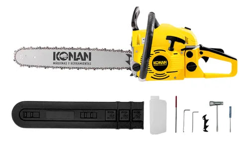 Enfrenta cualquier desafío de corte con la Motosierra Profesional a Nafta Konan KME/52. Equipada con un potente motor de 52cc y 3.0 HP, esta herramienta está diseñada para ofrecer un rendimiento excepcional en tareas de poda, tala de árboles, preparación de leña y trabajos forestales. Su espada de 20 pulgadas (50.8 cm) permite realizar cortes en troncos de gran diámetro con facilidad y precisión.