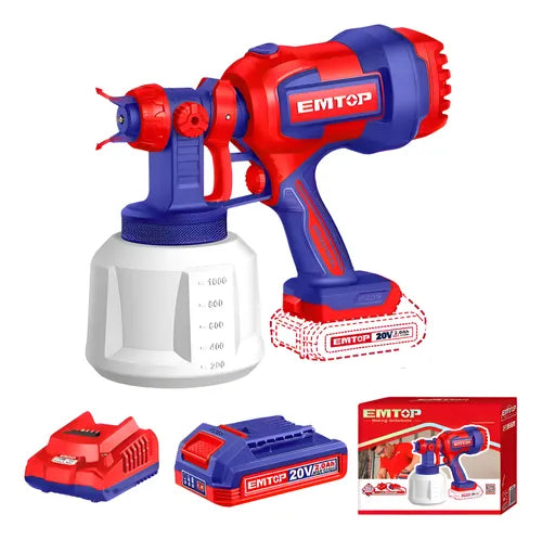 Libertad Inalámbrica: Funciona con el sistema de baterías de 20V de EMTOP para pintar en cualquier lugar.