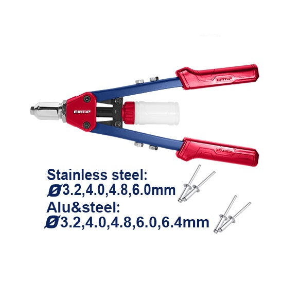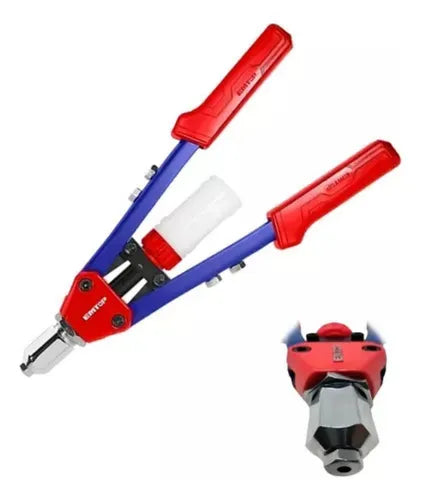 Realiza uniones fuertes y permanentes con la Remachadora Manual Profesional de 13'' de EMTOP. Esta herramienta de alta resistencia está diseñada para ofrecer un mayor poder de palanca gracias a sus brazos largos, reduciendo significativamente el esfuerzo necesario para instalar remaches, incluso los de mayor diámetro. Es la herramienta perfecta para trabajos de metalurgia, reparaciones de carrocerías, instalación de canaletas y cualquier aplicación que requiera una fijación robusta y duradera.
